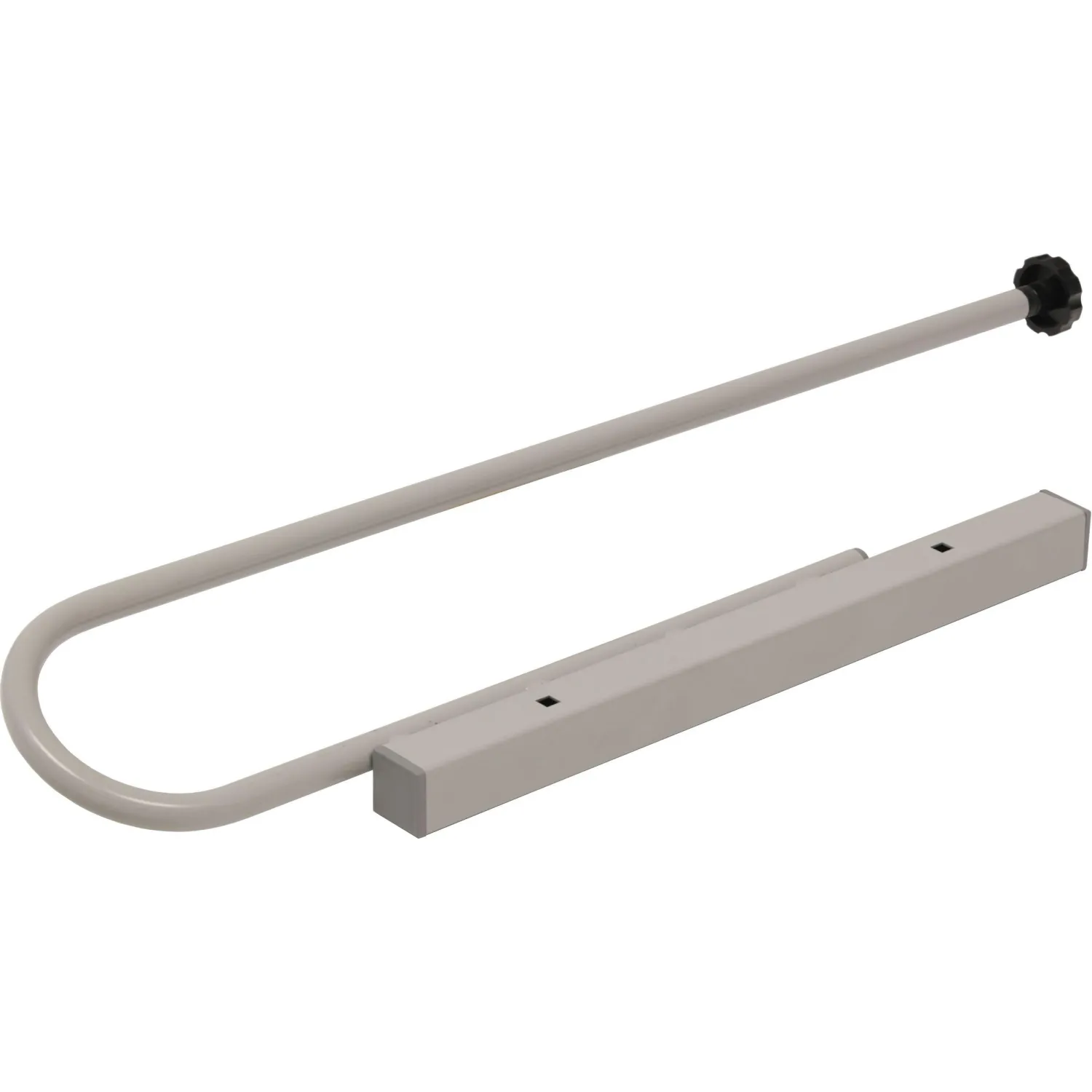 Держатель Hilfe КММ предназначен для удобного использования свёрнутых в рулон одноразовых простыней и полотенец (является дополнительной опцией на кушетки МД КС-01 и МД КС). Держатель изготовлен из профильной трубы прямоугольного сечения 40×20 мм, круглой трубы диаметром 20×1,2 мм. Держатель покрыт эпоксидно-порошковой краской серого цвета. Нагрузка — не более 7 кг. Держатель крепится к кушетке при помощи двух болтов М8×80. Он позволяет использовать одноразовые простыни и полотенца в рулонах шириной не более 700 мм. Внутренняя втулка рулонных простыней и полотенец должна быть не менее 25 мм. Держатель возможно закрепить с двух торцевых сторон кушеток МД КС-01 и МД КС. Конструкция держателя позволяет устанавливать одноразовые рулонные простыни на изделие только с правой стороны. Рулон фиксируется на изделии при помощи винта-барашка. Поставляется в собранном виде.