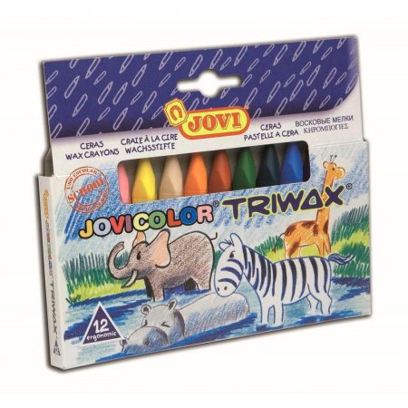 Специальные восковые мелки для малыша Jovi. Эргономичная треугольная форма: толщина 11 мм, длина 82 мм. Сертифицированы от 2х лет. Также прекрасно подходят для более старших детей, которые совершенствуют свои навыки рисования и учатся правильно держать карандаш в руке. Треугольные мелки идеальны для тренировки руки к письму у дошкольников и детей младшего школьного возраста. Изготавливаются из натуральных растительных компонентов, таких как натуральный воск, естественные пищевые красители. Благодаря своему составу они безвредны и очень прочны. Мелки не пачкают руки, не липнут, не выпотевают, не имеют запаха, не ломаются при падении, могут стираться ластиком. Могут использоваться очень долго, так как полностью состоят из пишущего стержня. Подходят для рисования по бумаге, картону, любым шероховатым поверхностям, проводят очень толстые и яркие, мягкие линии. Палитра из двенадцати красивых чистых цветов (желтый, красный, телесный, зеленый, голубой, синий, фиолетовый, оранжевый, розовый, темно-зеленый, коричневый, черный). Гипоаллергенны, не содержат глютен. Страна производства Испания.