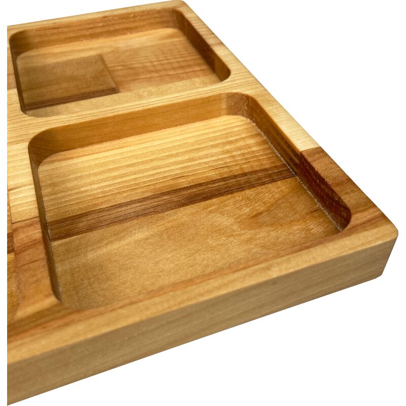 Менажница Panairo Lavarna 30×20×1,8 см предназначена для сервировки закусок, десертов и других блюд. Она состоит из трех секций, что позволяет удобно разделять продукты и сохранить их свежесть и вкус. В комплекте также идет разделочная доска размером 30 см x 20 см x 1,8 см из массива дерева. Менажница изготовлена из дерева, покрыта минеральным маслом (без запаха), безопасным для пищевых продуктов. Однородная структура и толщина дерева обеспечивают отсутствие трещин и сохранение ровной поверхности. Защитное покрытие маслом уменьшает возможность проникновения запахов внутрь древесины, сохраняя натуральный вкус продуктов. Рекомендуется регулярно обновлять покрытие минеральным или растительным маслом, пригодным для контакта с пищевыми продуктами, для поддержания долговечности изделия. Размер: 30×20×1,8 см. Объем: 200 мл. Цвет: бежевый. Менажницу нельзя мыть в посудомоечной машине. Менажница Panairo Lavarna отлично подходит как для домашнего использования, так и для сервировки на праздничных мероприятиях. Внешний вид и/или характеристики товара могут быть изменены производителем в соответствии с производственным процессом.