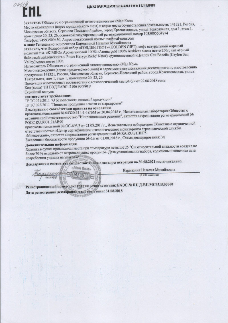 Прекрасный презент к праздникам сочетающий в себе совершенный кофе и великолепный чай! Набор состоит из молотого кофе Kimbo Gold 250 г и чая Riche Natur Sun&Moon Ceylon Sun Valley банка 100 г.