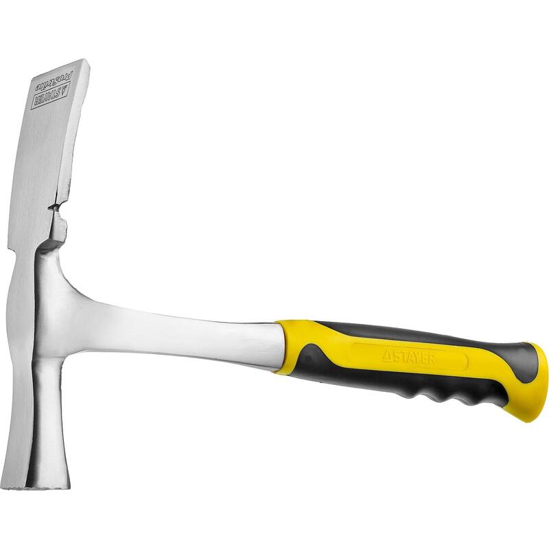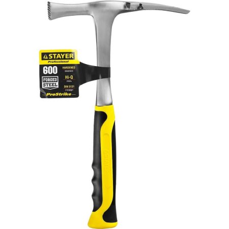 Молоток каменщика Stayer предназначен для строительных работ, связанных с обкалыванием и обтесыванием кирпича, бетона, шлакоблоков, природного и искусственного камня. Кованая голова из качественной высокоуглеродистой инструментальной стали закалена с обоих концов, что защищает боек и кирку от расплющивания; ее центральная часть «эластична», что не дает голове лопнуть из-за высоких нагрузок. Двухкомпонентная противоскользящая рукоятка для надежного хвата. Антивибрационная технология (AVT) гасит вибрации в рукоятке при ударе. Цельнометаллическая конструкция обеспечивает высокую надежность. Товар относится к ценовому сегменту «бюджет». Имеет базовые характеристики и более простую упаковку. Отвечает основным требованиям потребления. Внешний вид и/или характеристики товара могут быть изменены производителем в соответствии с производственным процессом.
