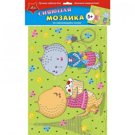 Набор для детского творчества «Сияющая мозаика. Подружки» понравится детям от 5-ти лет. На цветной картонной основе числами и цветом показаны места куда необходимо приклеить элементы мозаики. Элементы имеют клеевой слой, поэтому вы обойдетесь без клея и ножниц. В результате получится яркая сияющая картинка, которую отлично дополнят стразы. Набор включает цветную картонную основу размером 25,5x35 см, самоклеящиеся цветные элементы мозаики, часть из которых с голографическим эффектом, и стразы. Занятия с помощью этого набора развивают мелкую моторику, внимание, аккуратность. Все необходимые детали для поделки входят в состав набора.