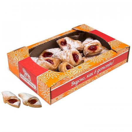Печенье сдобное Северная столица «Треугольник» из слоеного, хрустящего теста с ароматной земляничной начинкой.