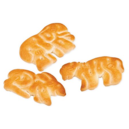 Крекер «Забавные животные» 6000 г.Румяные глянцевые крекеры в виде фигурок различных зверей манят легким сливочно-ванильным ароматом, рассыпчатой текстурой и хрустом. Крекер прекрасно дополнит вкус черного и зеленого чая, отлично сочетается с кофе и особенно хорошо — с молоком, или же просто так, в качестве легкого перекуса в поездке.Состав: мука пшеничная, вода питьевая, сахар, растительное масло, сухое обезжиренное молоко, разрыхлители: E503ii, гидрокарбонат натрия; сухая молочная сыворотка, соль, регуляторы кислотности: лимонная кислота, молочная кислота; ароматизаторы: «Ванильно-сливочный», «Ваниль»; эмульгатор лецитин соевый, антиокислитель пиросульфит натрия.Пищевая ценность на 100 г продукта, г: белки — 9; жиры — 12; углеводы — 70.Энергетическая ценность: 430 ккал.Срок годности: 6 месяцев.Условия хранения: хранить при температуре от 15 до 21 °С и относительной влажности воздуха не более 75%. Не подвергать воздействию прямого солнечного света.Масса нетто: 6000 г.Страна производства: Россия.