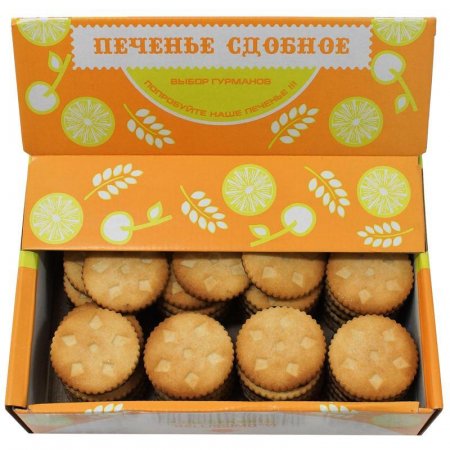 Коробка с прозрачным верхом демонстрирует аккуратный внешний вид печенья для комфортного выбора потребителями. Также она удобна для использования в больших офисных коллективах, на витринах магазинов и праздничных сборов многочисленных друзей и родственников. Стоит однажды попробовать нежный вкус ’Шокко’, чтобы стать их постоянными поклонниками и время от времени баловать себя прекрасным лакомством.