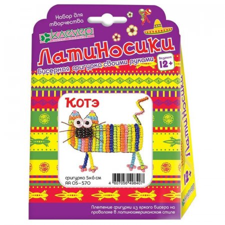 Набор 'Котэ' серии 'Латиносики' разработан для плетения детьми старше 12 лет смешной фигурки с полосками из разноцветного бисера в этно-стиллистике Латинской Америки.