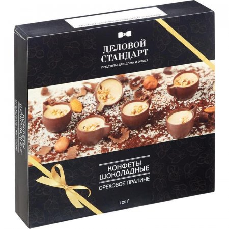 Шоколадные конфеты Деловой Стандарт с ореховым пралине — это миниатюрные чашечки из темного шоколада, наполненные ореховым пралине.