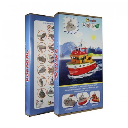 Набор для творчества Конструктор-Раскраска «Корабль» с красками и кистью в гофрокоробе в комплекте.