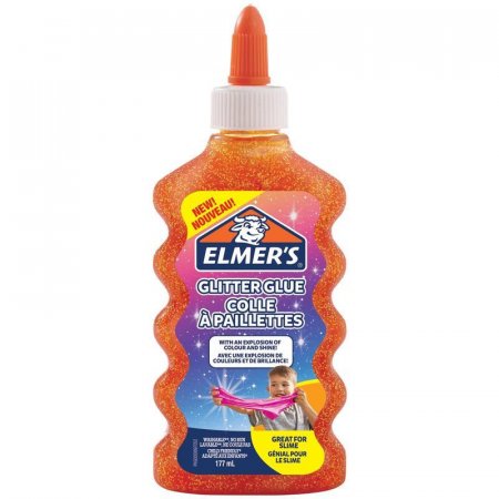 Прозрачный клей ПВА Elmer’s Glitter Glue с оранжевыми блестками — компонент для приготовления слаймов. Объем: 177 мл. Может смешиваться с другими клеями Elmer’s. Клей не текучий, легко смывается, безопасный и не токсичный. Подойдет для приготовления 1 слайма.