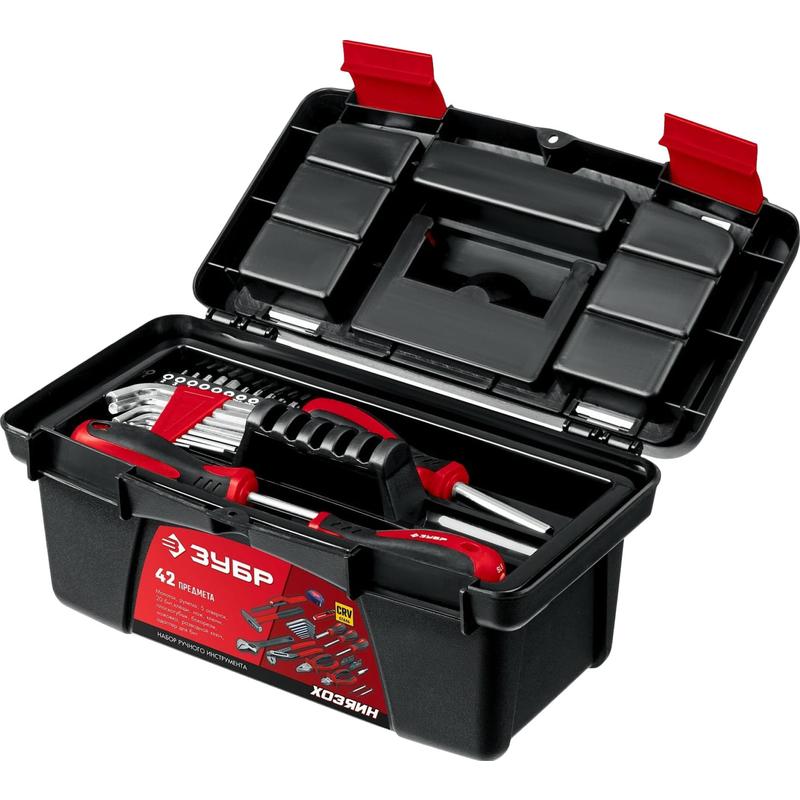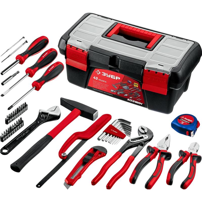 Универсальный набор инструмента для дома Зубр Хозяин-42 42 предмета 22105 включает в себя удобный и практичный инструмент для слесарей, домашних Мастеров и монтажников. Все инструменты оснащены удобными рукоятками и не скользят. Комплект поставляется в прочном кейсе из пластика. Можно применять для широкого спектра работ без необходимости расширения дополнительными инструментами.
