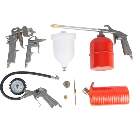Набор профессионала из 5 предметов Fubag 120101 широко используется в автомастерских и автолюбителями для выполнения различных операций, таких как: покрасочные работы, нанесение антикоррозионного покрытия, продувка деталей от пыли, подкачка шин. Шланг имеет специальную муфту с защелкой, что позволяет быстро менять насадки, тем самым сокращая время на смену операции. Диаметр сопла: краскопульта 1,5 мм, пистолета для вязких жидкостей 4,5 мм,пистолета для продувки 2 мм; Расход воздуха: краскопульта 160 л/мин, пистолета для вязких жидкостей 130 л/мин, пистолета для продувки 125 л/мин, пистолета для подкачки шин 140 л/мин.; Емкость бачка: краскопульта 500 мл; пистолета для вязких жидкостей 900 мл; Рабочее давление: краскопульта 3 бара, пистолета для вязких жидкостей 3,5 бара, пистолета для продувки 2-6 бар, пистолета для подкачки шин до 12 бар. Внешний вид и/или характеристики товара могут быть изменены производителем в соответствии с производственным процессом.