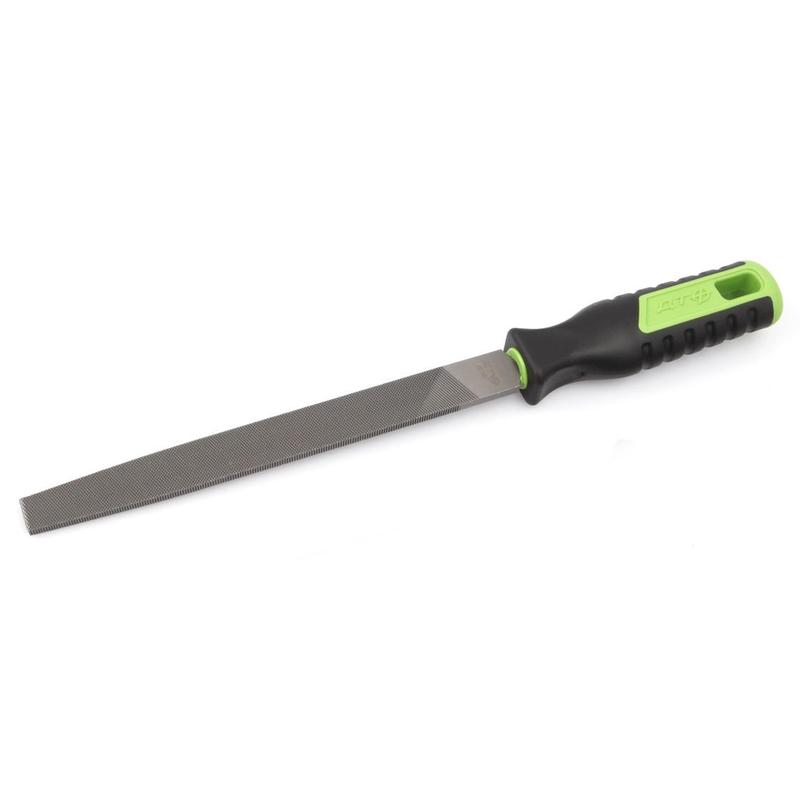 Напильники слесарные используются для ручного опиливания материалов, обеспечивают высокую чистоту и точность в обработке поверхностей. На рабочую часть инструмента нанесена двойная перекрестная насечка. Каждый напильник оснащен двухкомпонентной рукояткой для более комфортного проведения работ. Зернистость № 2 Шаг: 14 зуб./10 мм Длина: 324 мм Длина рабочей части: 200 мм Сталь: Т12 Твердость: 60 HRCВнешний вид и/или характеристики товара могут быть изменены производителем в соответствии с производственным процессом.
