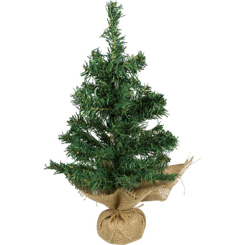 Елка настольная, без декора, 45 см, ПВХ, подставка декорирована холщовой мешковиной, упаковка ПП пакет.