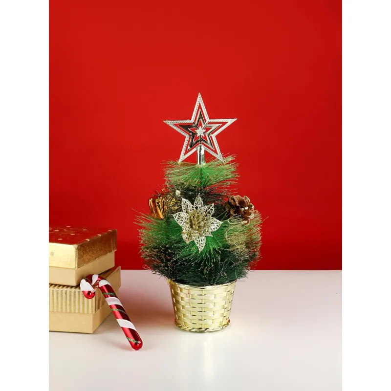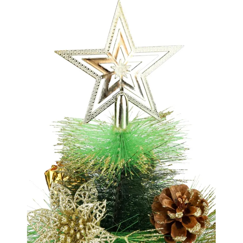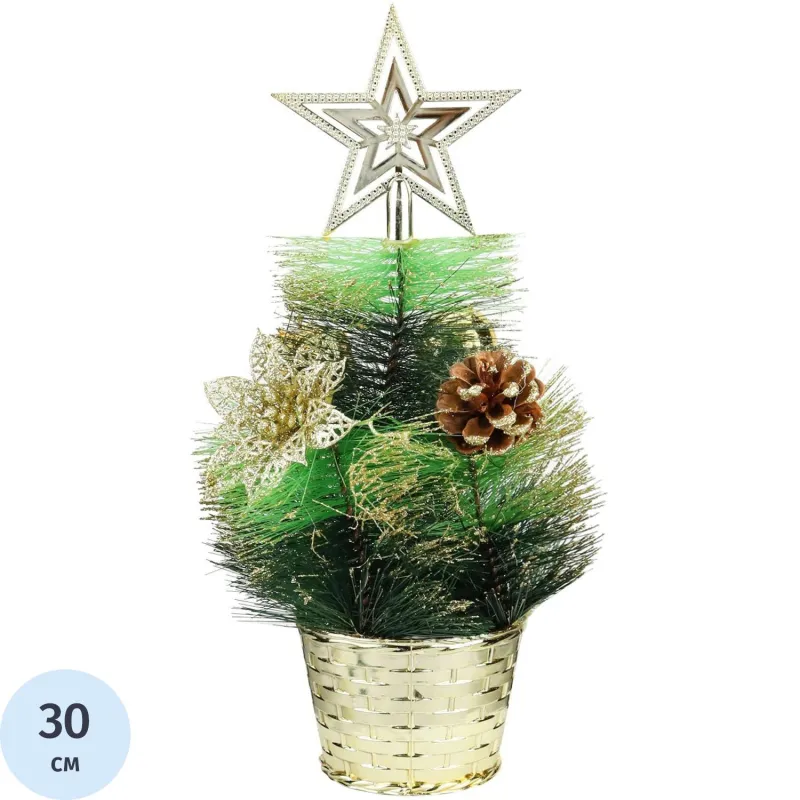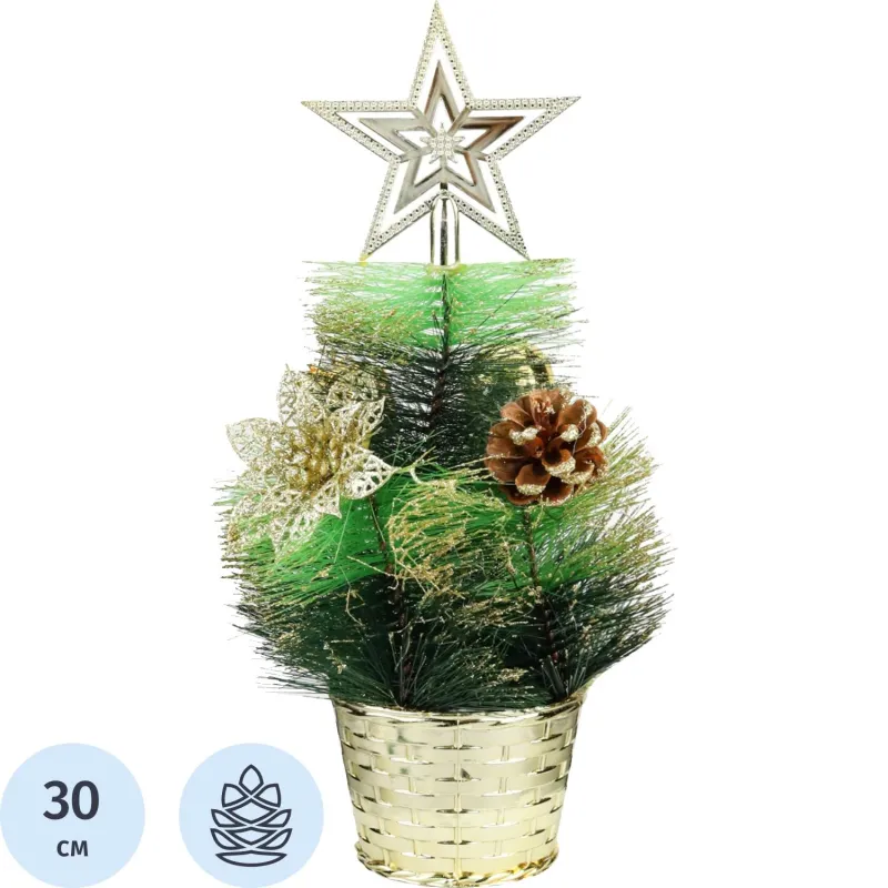Елка новогодняя Miland настольная 30 см. Декоративная елочка поможет создать новогодний уют, не занимая много места. Она украсит рабочее место в офисе или послужит великолепным декором домашнего интерьера. Елка выполнена из ПВХ и красиво декорирована, что создает по-настоящему праздничный вид. Размер: 30 см.