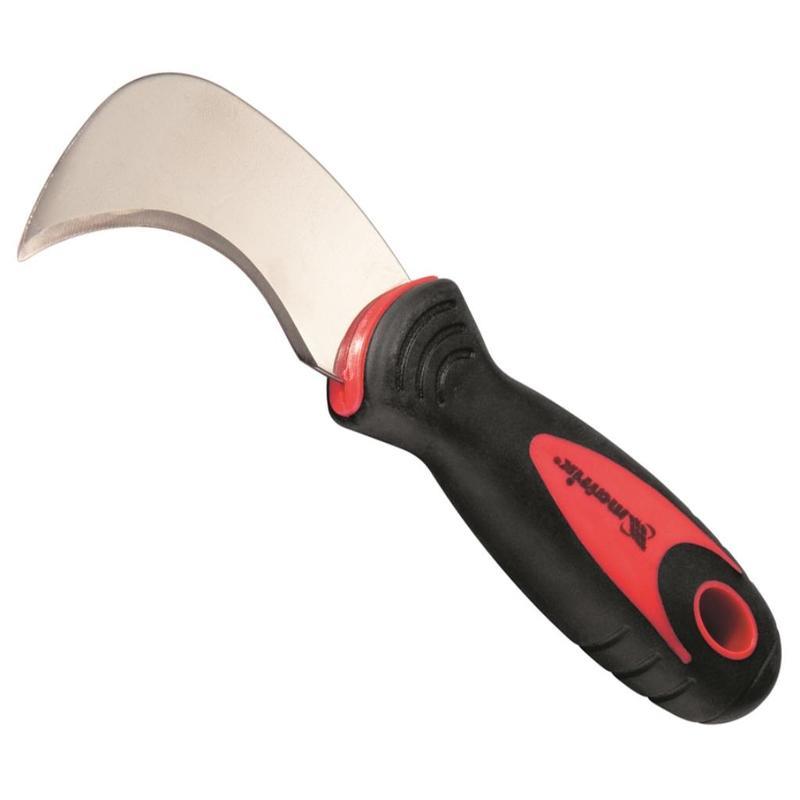 Предназначен преимущественно для резки напольных покрытий. Благодаря изогнутому полотну ножа, режущая кромка полотна не повреждается при резке материала, лежащего на твердой поверхности. Лезвие — ножевая нержавеющая сталь. Двухкомпонентная рукоятка не скользит в руке.