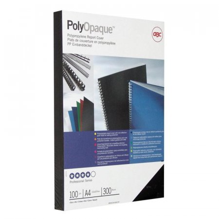 Обложки для переплета GBC формата А4 выполнены из непрозрачного пластика черного цвета толщиной 300 мкм. Используются при работе с брошюровщиками (совместно с пружинами). Придают документам презентабельный вид, защищают их от загрязнений и повреждений. Применяются как для титула, так и в качестве подложки. В упаковке 100 штук.