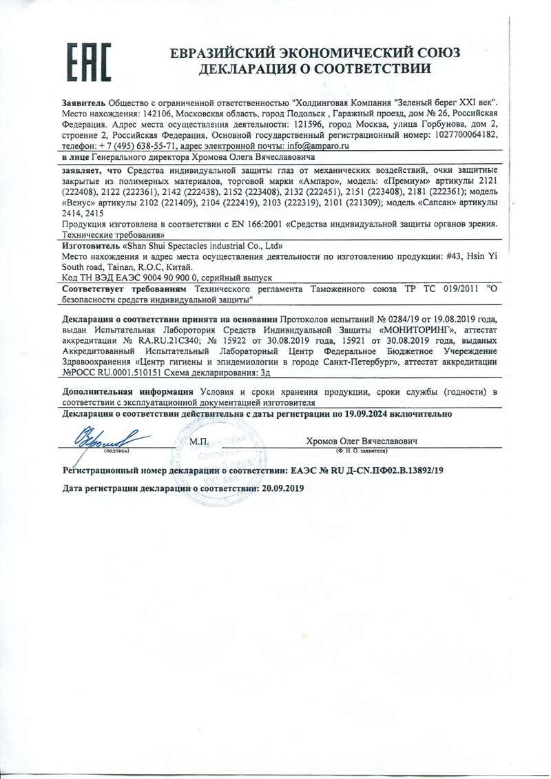 Очки защитные герметичные «Ампаро Премиум» прозрачные (AF-AS). Защитные очки оснащены прозрачными линзами, выполненными из ударопрочного поликарбоната. Конструкция оправы, изготовленная из эластичного ПВХ, обеспечивает плотное прилегание к лицу. Широкая лента надголовного крепления обеспечивает повышенный комфорт использования. Могут применяться при выполнении работ на станках и устройствах для механической обработки твёрдых материалов, слесарных работах, а также при разнообразных видах работ, связанных с возможной угрозой получения травм глаз.