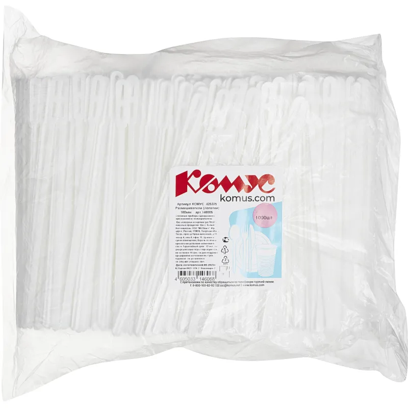 Размешиватель одноразовый Комус Стандарт белый 160 мм 1000 штук в упаковке