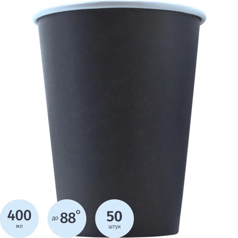 Стакан одноразовый бумажный 400 мл черный 50 штук в упаковке Комус Эконом