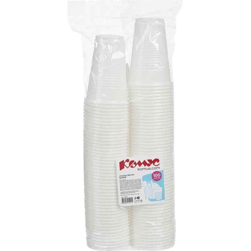 Стакан одноразовый пластиковый 200 мл белый 100 штук в упаковке Комус Эконом