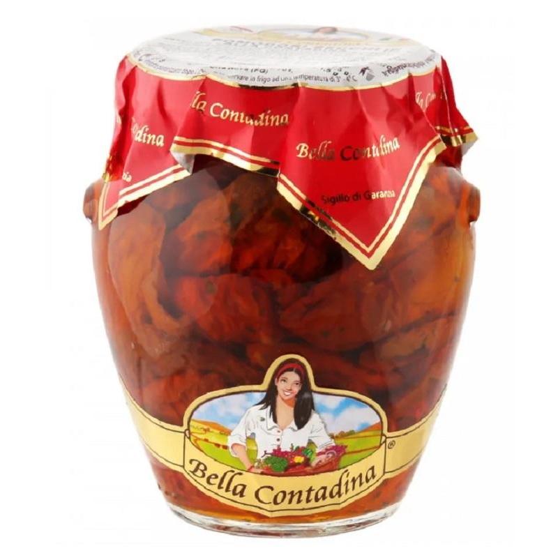 Томаты Bella Contadina вяленые в масле 290 г.Вяленые томаты от Bella Contadina — является абсолютно самодостаточным блюдом. Жители средиземноморья как только его не употребляют: добавляют в выпечку и салаты, готовят из них всевозможные соусы и пасты, подают как закуску к вину.Вялят томаты традиционным для Италии способом на открытом ласкающем солнце. И лишь затем консервируют с использованием масла и приправ. Вяленые томаты очень полезный и ценный продукт. В процессе приготовления они ничего не теряют в свойствах. Чем становятся в два раза привлекательней для любителей не только вкусной, но и здоровой пищи!Состав: томаты вяленые 60%, масло подсолнечное 37%, маслооливковое экстра верджин, каперсы, петрушка, чеснок, перец чили, уксус, соль, антиоксидант: аскорбиновая кислота, регуляторкислотности: лимонная кислота.Пищевая ценность: белки — 1,5; жиры — 18,7; углеводы — 37,5.Энергетическая ценность: 312 ккал/1304 кДж.Срок годности: 36 месяцев.Условия хранения: Хранить не более 1095 дней при температуре 5 25 °C.Вес: 290 г.Страна производства: Италия.