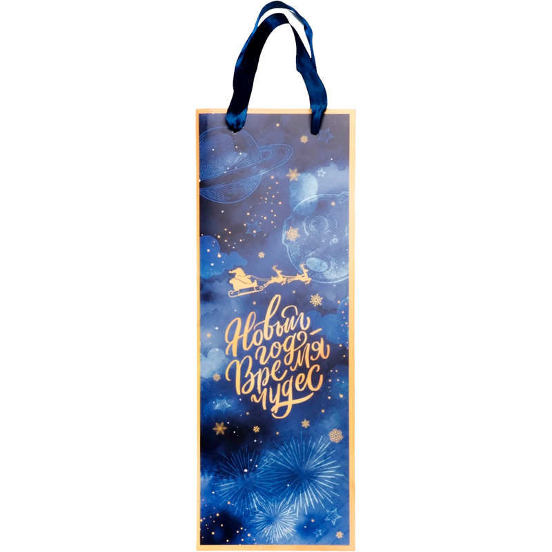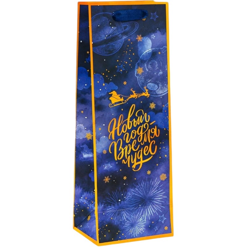 Пакет подарочный под бутылку Upak Land «Время чудес» (36×13×10 см).
