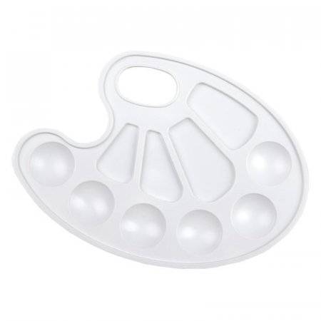 Палитра для рисования идеально подходит для смешивания красок и получения новых тонов. Палитра пластиковая овальной формы с отверстием для удобства держания в руке. Размер: 210x156 мм.