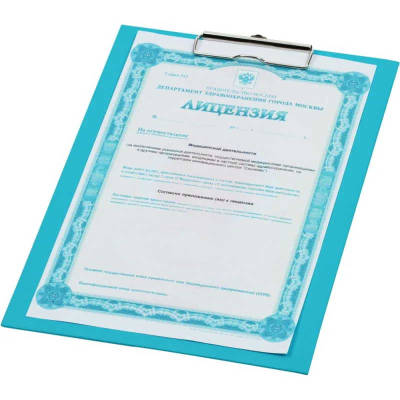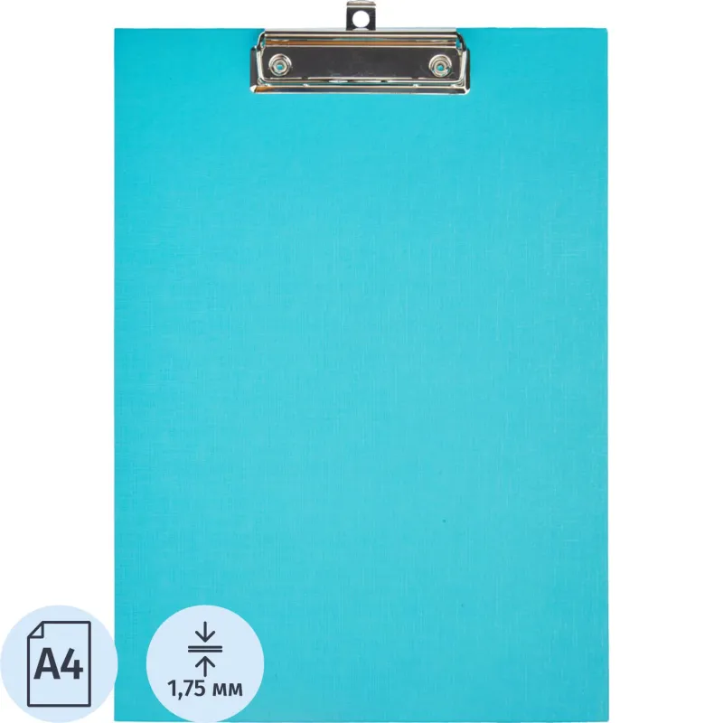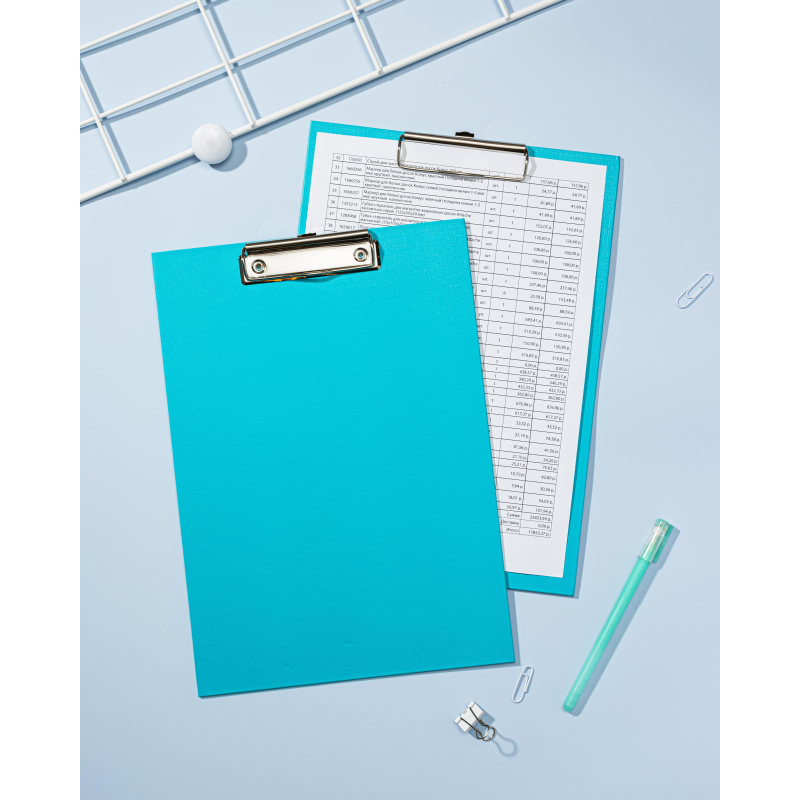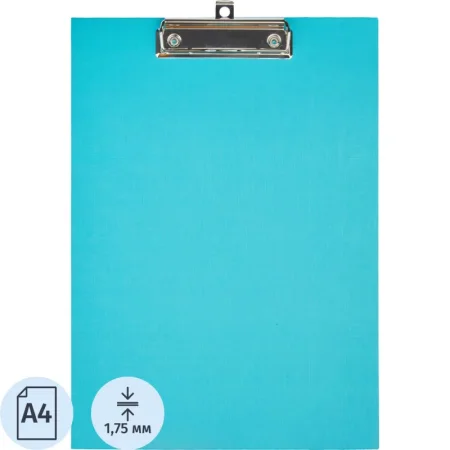 Планшет для бумаг Комус формата А4 изготовлен из плотного картона, покрытого пластиком (бумвинилом) бирюзового цвета. Позволяет комфортно работать с документами на весу. Металлический прижим надежно удерживает листы и файлы.