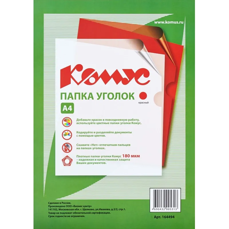 Папка-уголок Комус формата А4 изготовлена из плотного прозрачного полипропилена плотностью 180 мкм, красного цвета. Вмещает до 40 листов. Позволяет удобно хранить и переносить документы, предотвращает их смятие и загрязнение.