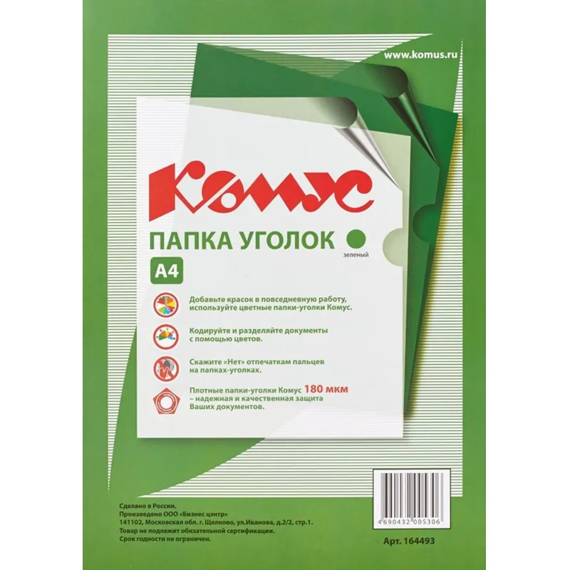 Папка-уголок Комус формата А4 изготовлена из плотного прозрачного полипропилена плотностью 180 мкм, зеленого цвета. Вмещает до 40 листов. Позволяет удобно хранить и переносить документы, предотвращает их смятие и загрязнение.