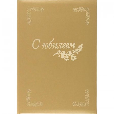 Адресная папка формата А4. Выполнена из переплетного материала танго золотого цвета (слой ПВХ на бумажной основе). Внутренние вклейки — из балакрона (ПВХ с имитацией кожи). На обложке надпись «С юбилеем» и орнамент (тиснение золотой фольгой). Внутри фиксирующий ремешок. Ручная сборка. На данный товар можно нанести логотип. Папка адресная — прекрасный атрибут для официальных и праздничных мероприятий.