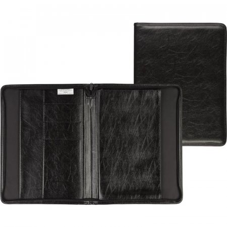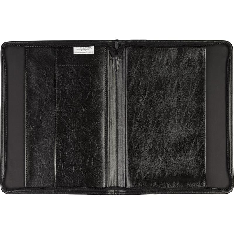 Папка Выбор № 149 с ручкой. Материал — искусственная кожа. Закрывается на молнию. Внутри карманы для документов формата А4, а также система карманов для визиток и других мелких документов. Корешок папки (толщина) — 2 см. Размеры: 34x27 см.