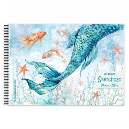 Скетчпад Феникс+ Хвосты формата А4. Размеры: 290x200 мм. Содержит 20 листов, внутренний блок — белая акварельная бумага плотностью 200 г/кв.м. Обложка — мелованный картон, плотностью 190 г/кв.м, полноцветная печать с матовой ламинацией. Подложка — переплетный картон. Крепление — спираль по короткой стороне.