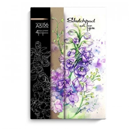 Скетчпад Феникс+ Цветы формата А5. Размеры: 145x210 мм. Содержит 56 листов, внутренний блок, линовку, плотностью 100 г/кв.м, листы зеленой тонированной бумаги плотностью 80 г/кв.м, листы крафт-бумаги плотностью 80 г/кв.м, листы черной тонированной бумаги плотностью 120 г/кв.м, листы раскраски без печати/печать в одну краску. Твердый переплет, матовая ламинация.