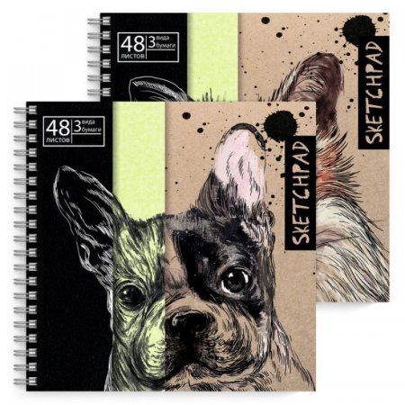 Скетчпад Феникс+ Животные. Размеры: 195x195 мм. Содержит 48 листов: 16 листов черная, 16 листов зеленая, 16 листов крафт-бумага плотностью 120 г/кв.м., 80 г/кв.м. Обложка полноцветная печать, твердый переплет на спирали, матовая ламинация.