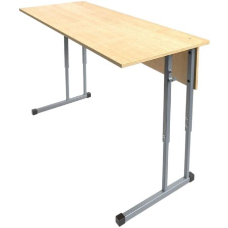 Парта растущая двухместная. Столешница и фронтальная панель стола выполнены из ЛДСП 16 мм. Торцы столешницы закрыты противоударной кромкой ПВХ толщиной 2 мм. Торцы фронтальной панели закрыты противоударной кромкой ПВХ толщиной 0,5 мм. Металлический каркас выполнен из профиля квадратного сечения 25×25 мм и 20×20мм с толщиной стенок не менее 1,2 мм и покрыт порошковой краской, стойкой к химическим и механическим воздействиям. На свободных концах труб установлены заглушки из ударопрочных полимеров. Каркас стола имеет полимерные подпятники, предотвращающие повреждение напольного покрытия. Вся крепёжная фурнитура на металлокаркасах скрыта внутри трубы для продления срока службы изделия. Переднее крепление на столешнице скрытое (резьбовые втулки и болты М6). Заднее крепление на столешнице сквозное (мебельный болт с гайкой). Фронтальная панель крепится к каркасу на мебельные болты с гайками. Регулировка высоты осуществляется с помощью винтовых соединений с гайкой Эриксона. В конструкции предусмотрено два крючка для портфелей. Стол имеет цветовую маркировку в соответствии с ростовой группой. Стол изготавливается в соответствии с ГОСТ 11015-93. Поставляется одной транспортной упаковкой.