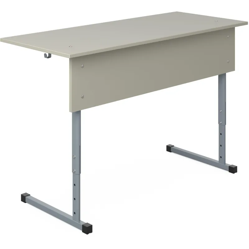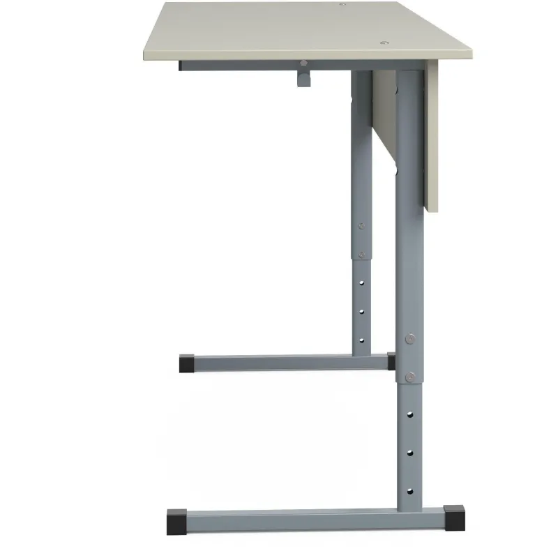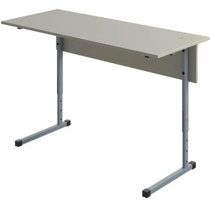 Парта растущая двухместная Комфорт. Столешница и фронтальная панель стола выполнены из ЛДСП толщиной 16 мм. Торцы столешницы закрыты противоударной кромкой ПВХ толщиной 2 мм. Торцы фронтальной панели закрыты противоударной кромкой ПВХ толщиной 0,5 мм. Металлический каркас выполнен из профиля квадратного сечения 25×25 мм и плоскоовального профиля 45×25 мм и 20×40 мм с толщиной стенок не менее 1,5 мм. Каркас покрыт порошковой краской, стойкой к химическим и механическим воздействиям. На свободных концах труб установлены заглушки из ударопрочных полимеров. Каркас стола имеет полимерные подпятники, предотвращающие повреждение напольного покрытия. Вся крепёжная фурнитура на металлокаркасах скрыта внутри трубы для продления срока службы изделия. Переднее крепление на столешнице скрытое (резьбовые втулки и болты М6). Заднее крепление на столешнице сквозное (мебельный болт с гайкой). Фронтальная панель крепится к каркасу на мебельные болты с гайками. Диапазон регулировки высоты для ростовой группы 3-7. Механизм регулировки высоты телескопический. Регулировка высоты осуществляется с помощью винтовых соединений с гайкой Эриксона. В конструкции предусмотрено два крючка для портфелей. Стол имеет цветовую маркировку в соответствии с ростовой группой. Стол изготавливается в соответствии с ГОСТ 11015-93.