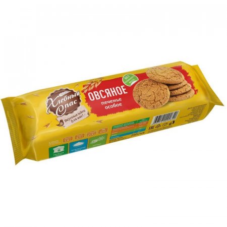 Печенье овсяное Хлебный Спас «Особое» 250 г произведено по традиционному рецепту настоящего классического овсяного печенья без пальмового масла (в составе только высокоолеиновое подсолнечное масло). Печенье является постным и подходит для употребления в пост.
