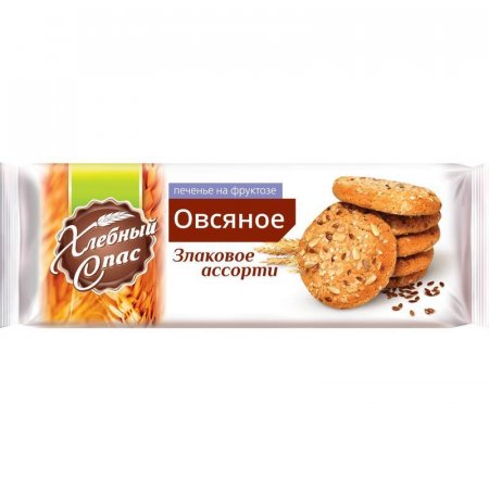 Печенье Овсяное «Злаковое ассорти» на фруктозе — это уникальный продукт, сочетающий в себе притягательность выпечки и полезные свойства овсяных хлопьев. Печенье на природном сахарозаменителе фруктозе. Содержит в себе максимальное количество полезных злаков и семян. Оригинальный внешний вид продукту придает обсыпка из 5 видов злаков (овсяные и ячменные хлопья, семена льна, кунжута, подсолнечника). Печенье обогащено витаминами и микроэлементами необходимыми для здоровой жизни человека. В составе печенья овсяная мука премиум качества и высокоолеионовое подсолнечное масло, не содержит гидрогенизированные жиры. Энергия и польза в каждом печенье. Походит к употреблению в пост.