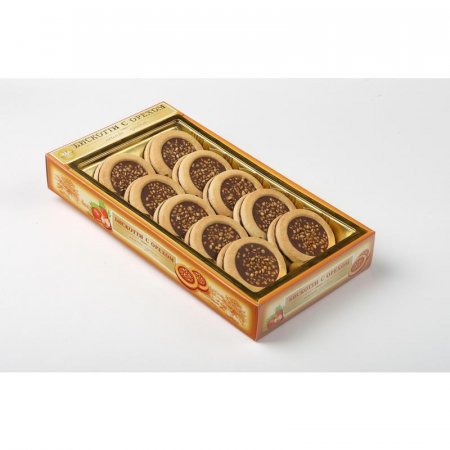 Печенье «Бискотти» с ореховой начинкой и шоколадной глазурью изготовлено из сдобного теста. Поставляется по 20 штук в картонной коробке. Вес 245 г.Срок годности: 270 дн.Условия хранения: Хранить в сухом прохладном месте Производитель: Бискотти