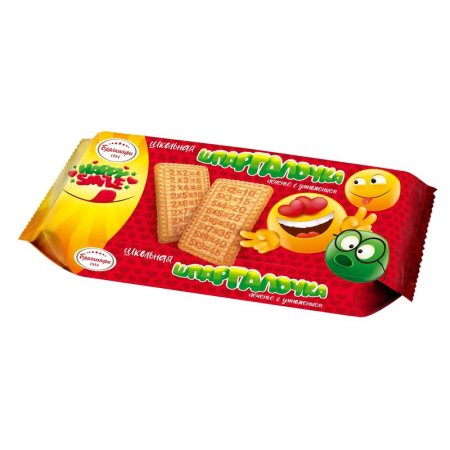Печенье сахарное Брянконфи Школьная Шпаргалочка 230 г. Состав: мука пшеничная; сахар; масло растительное; сироп глюкозно-фруктозный; вода питьевая; сгущенное с сахаром цельное молоко (нормализованное молоко, сахар, сахар молочный (лактоза)); меланж яичный жидкий; разрыхлители: карбонат аммония, гидрокарбонат натрия (сода пищевая); соль; эмульгатор лецитин соевый; ароматизатор натуральный 'Пломбир'. Энергетическая ценность 100 г продукта: 1850 кДж (440 ккал).Пищевая ценность 100 г продукта (средние значения): белки — 7,5 г, жиры — 16 г, углеводы — 67 г. Срок годности: 6 месяцев. Хранить при температуре (18?5)°С и относительной влажности воздуха не более 75%. Вес нетто: 230 г. Тип упаковки: мягкая. Страна производства: Россия. ТУ:10.86.10-003-00340552-2018