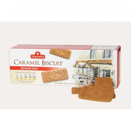 Карамелизированное печенье с прекрасным вкусом, которое тает во рту. Состав: пшеничная мука, сахар, растительный жир (пальмовый), соевая мука, карамельный сироп, разрыхлитель: гидрокарбонат натрия, корица, соль. Содержит пшеничную муку (глютен) и сою.
