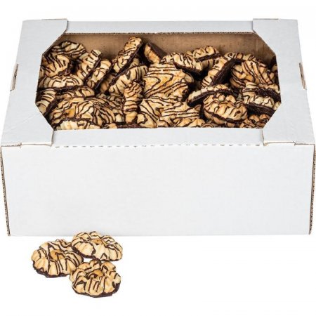 Сдобное печенье в шоколадеПищевая ценность среднее значение на 100г продукта: белки — 6,29г; жиры — 21,30г,; углеводы — 66,18г.Энергетическая ценность: 349ккал.Условия хранения: хранение при t=18±3'С и относительной влажности воздуха не более 75%, в хорошо проветриваемом помещении, чистых складах, не зараженных вредителями, отдельно от отопительных приборов, пахучих веществ и попадания прямого солнечного света.Срок годности 2 месяца.Внимание! Продукты питания надлежащего качества обмену и возврату не подлежат согласно Закону РФ от 07.02.1992 N 2300–1 (ред. от 03.07.2016) «О защите прав потребителей».
