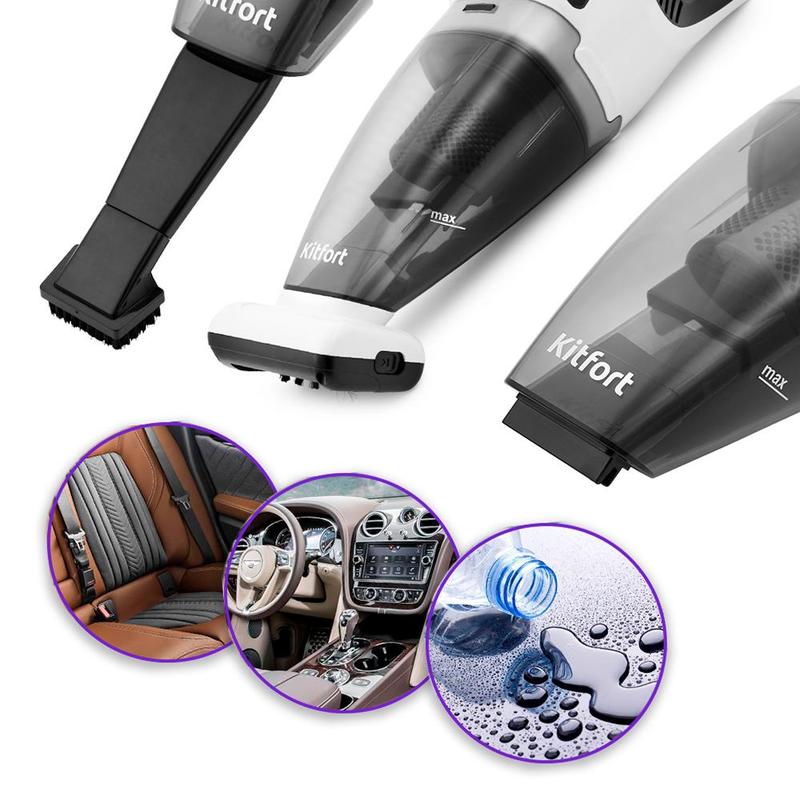 Ручной автомобильный пылесос Kitfort KT-557 позволяет оперативно убрать сухую грязь, пыль и разлитые жидкости. Он компактен, имеет стильный дизайн аэродинамической формы и удобную ручку. Турбощетка с высокой скоростью вращения вычистит любые ворсистые материалы от пыли, шерсти, волос и ниток. Длинная узкая насадка поможет вам вычистить самые труднодоступные места, а силиконовая насадка отлично подходит для сбора жидкости. Пылесос имеет 2 скорости работы. Литий-ионный аккумулятор обеспечивает высокую мощность и длительное время работы до 30 минут. Циклонный фильтр отсеивает наиболее тяжелые или объемные загрязнения, попавшие в пылесборник. Фильтр грубой очистки предназначен для отсеивания мелких частиц мусора. Фильтр тонкой очистки останавливает мельчайшие частички пыли. Для вашего удобства имеется база для зарядки с функцией хранения насадок.Внешний вид и/или характеристики товара могут быть изменены производителем в соответствии с производственным процессом.