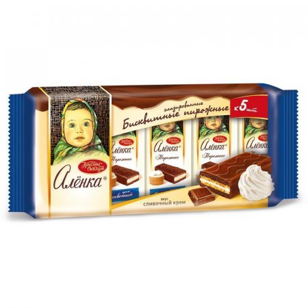 Пирожные бисквитные глазированные кондитерской глазурью, прослоенные кремом 'Аленка' вкус сливочный крем.