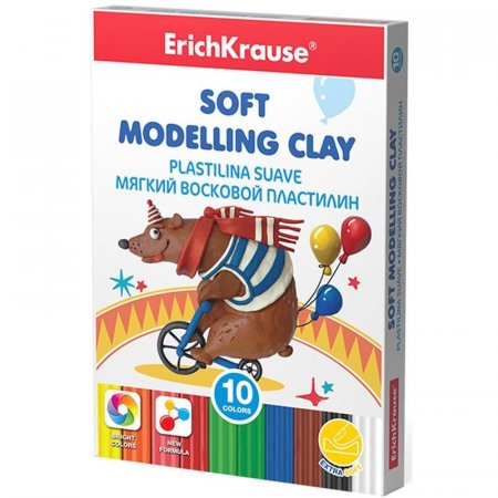 Мягкий восковой пластилин ErichKrause имеет мягкую консистенцию и особую пластичность, что делает его отличным инструментом для развития мелкой моторики у малышей и дошкольников. Пластилин не требует предварительного разминания, не застывает на воздухе, а также не прилипает к рукам и не пачкает одежду. Цветовая палитра содержит яркие насыщенные цвета, которые отлично смешиваются между собой, создавая новые оттенки. Каждый брусок имеет отдельную упаковку flow-pack, которая надежно сохраняет товарный вид и пластичные свойства продукта. В набор входят 10 цветов: зеленый, белый, голубой, розовый, желтый, коричневый, оранжевый, черный, красный,темно-зеленый. В комплекте для декорирования и моделирования прилагается стек, длиной 13.5 см. Размер упаковки 110x155x15 мм.