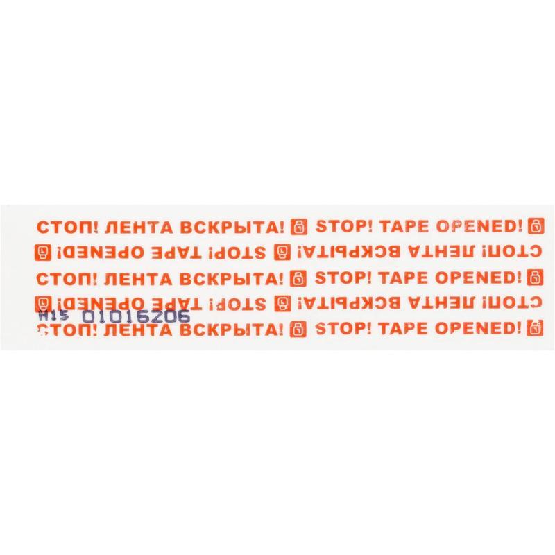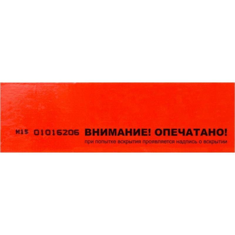 Пломбировочная клейкая лента обладает высокими защитными свойствами. Разделена перфорацией на 375 отрывных отрезков. Каждый отрезок имеет собственный номер, который после снятия ленты остается на опломбируемой поверхности. При попытке вскрытия на индикаторной ленте и на поверхности проявляется надпись «Стоп! Лента вскрыта! Stop! Tape opened!». Может использоваться на картоне и других материалах.