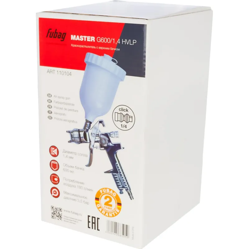 Краскораспылитель Fubag G600/1.4 HVLP 110104 предназначен для осуществления покрасочных работ. Бак краскопульта располагается сверху и способен вместить в себя 0,6 литра краски. Диаметр сопла данной модели составляет 1,4 мм. Металлическая конструкция пистолета говорит о его надежности.