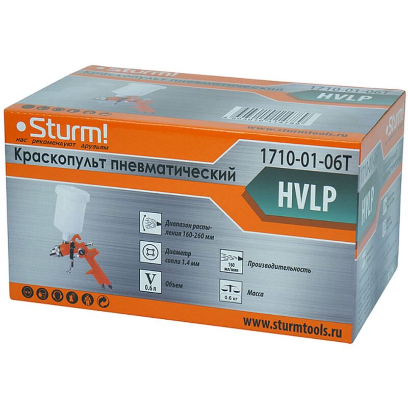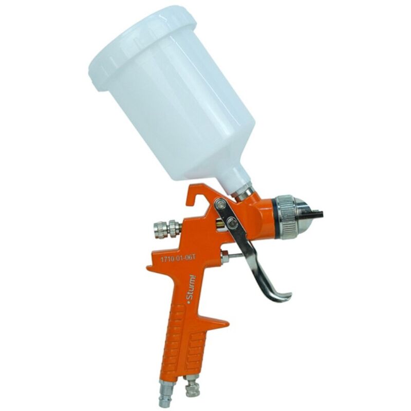 Краскопульт пневматический изготовлен по технологии HVLP (подача большого объема воздуха при низком давлении) с повышенным распылением красочного материала. Модель при использовании обладает стабильной формой 'факела' и обеспечивает отличный внешний вид конечного покрытия. Краскопульт Sturm! 1710-01-06 имеет высокий коэффициент переноса красителя, дает заметную экономию материала, ограничивает выброс летучих химических веществ в атмосферу и сохраняет здоровье потребителя. Удобная в эксплуатации, производительная универсальная модель для работы с любыми поверхностями.