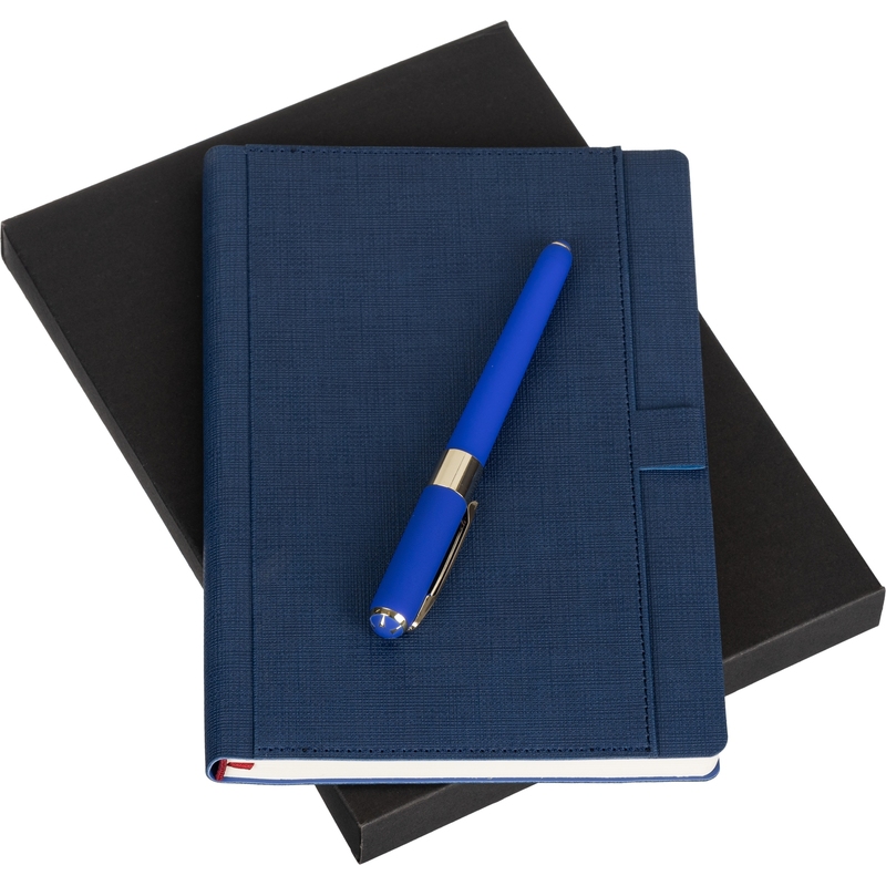 Подарочный комплект Marseille предназначен для ведения записей, подходит для рабочих и личных задач. Он включает синий ежедневник формата А5 в мягкой обложке и ярко-бирюзовую ручку из пластика. Обложка изготовлена из искусственной кожи с фактурным тиснением, имитирующим ткань. Её универсальный офисный стиль дополнен карманом для бумаг и визиток с декоративной отстрочкой в тон и аккуратной петлёй для ручки. Бумажный блок, закреплённый книжным переплётом, выполнен из бежевой офсетной бумаги повышенной плотности 70-90 г/кв. м, дополнен бордовой тонкой лентой-закладкой. Внутри есть справочная информация на 8 страницах. Подарочная упаковка в комплекте. Ежедневник и ручка, купленные в наборе, станут отличным готовым подарком для коллег, друзей или близких.